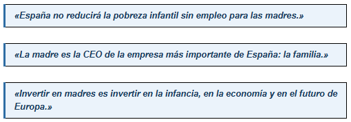 - Medidas reales de conciliación para la madre que trabaja y emprende, especialmente en el ámbito rural.