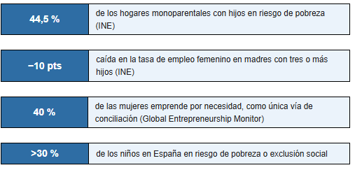 España se mantiene entre los países de la Unión Europea con mayores tasas de pobreza infantil: más de uno de cada tres menores está en riesgo de pobreza o exclusión social, según datos de Eurostat y del Instituto Nacional de Estadística (INE). En este contexto, la Fundación Madrina ha situado el emprendimiento materno como una de las principales vías para combatir esta problemática estructural.